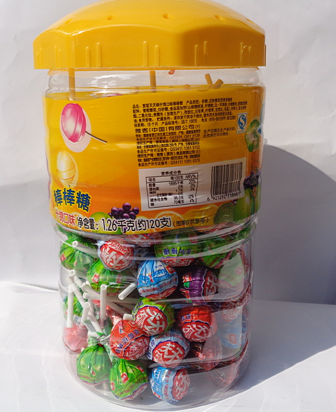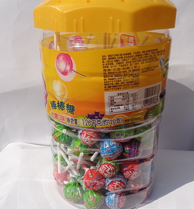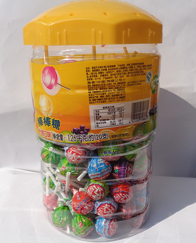 雅客天天棒棒棒糖什绵口味每瓶120支1.26Kg