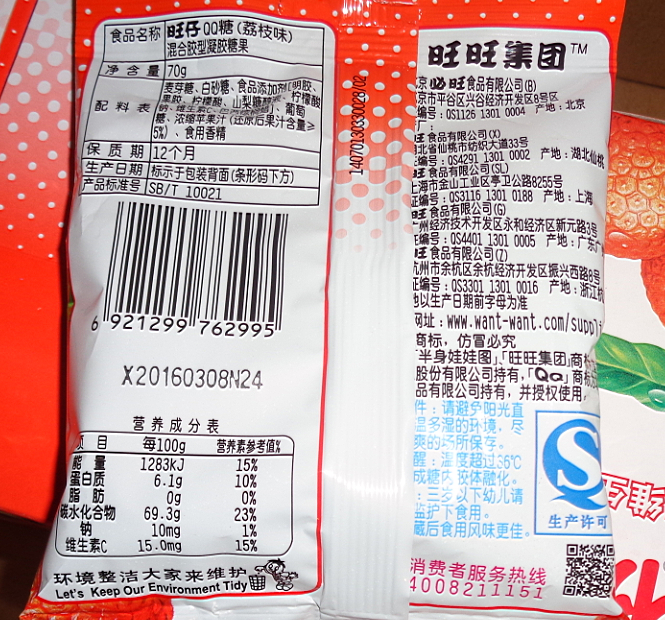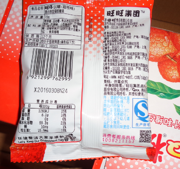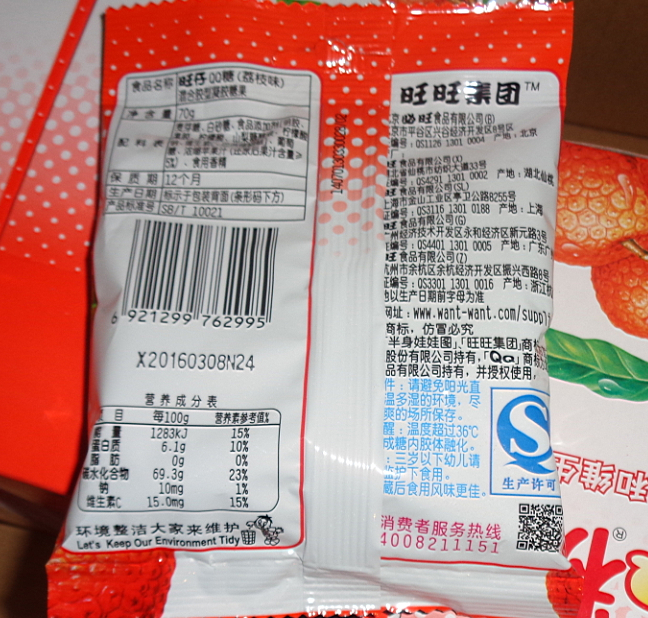 旺仔QQ糖添加果汁和维生素C