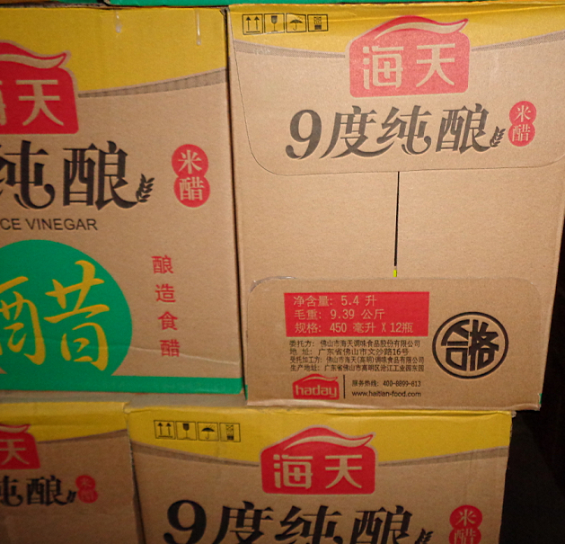 海天9度纯酿米醋酿造食醋450ml*12瓶每箱