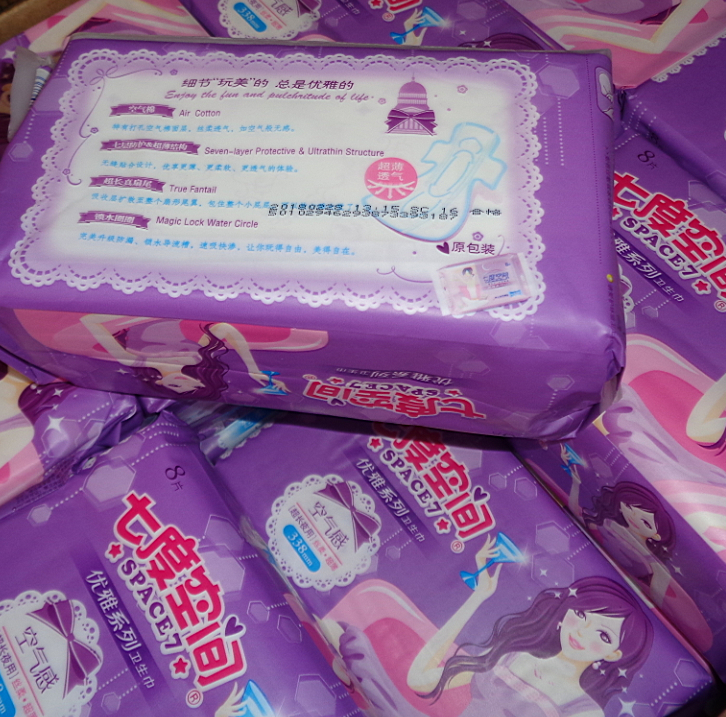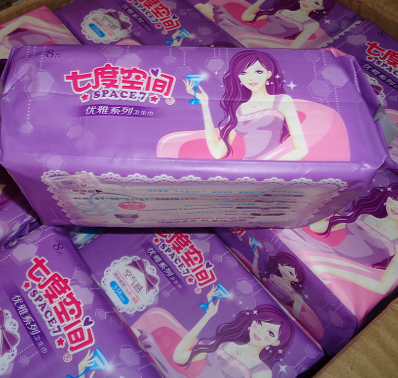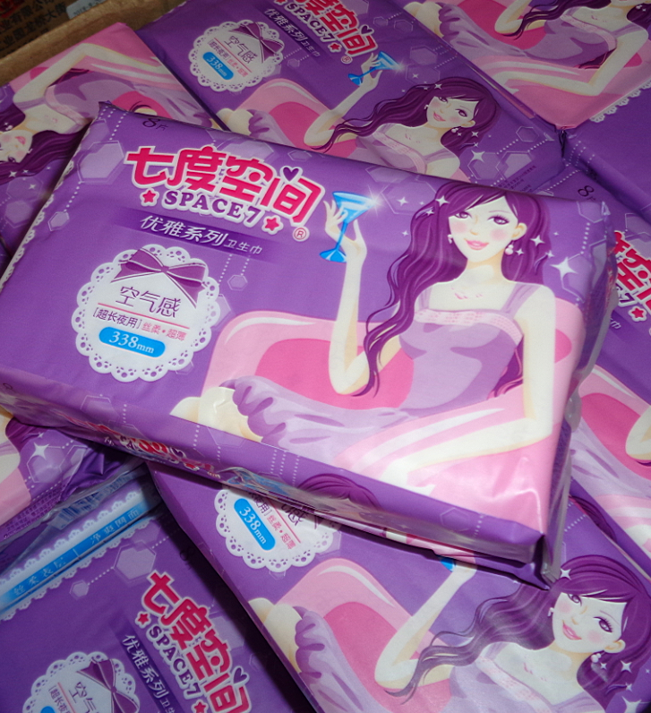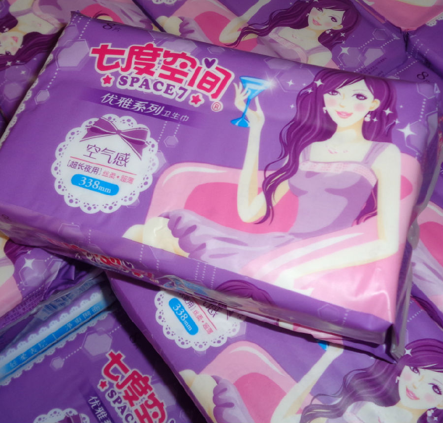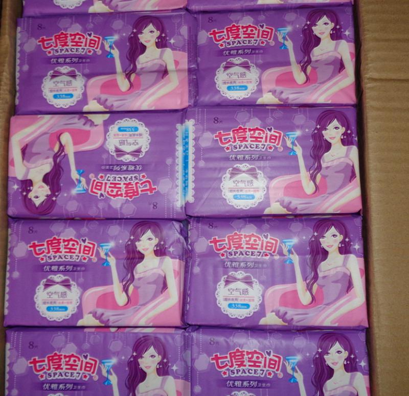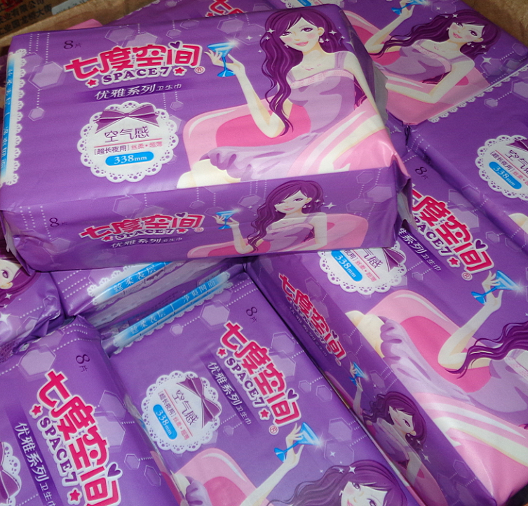 七度空间优雅系列卫生巾338mm超长夜用8片每包丝柔超薄空气感338mm