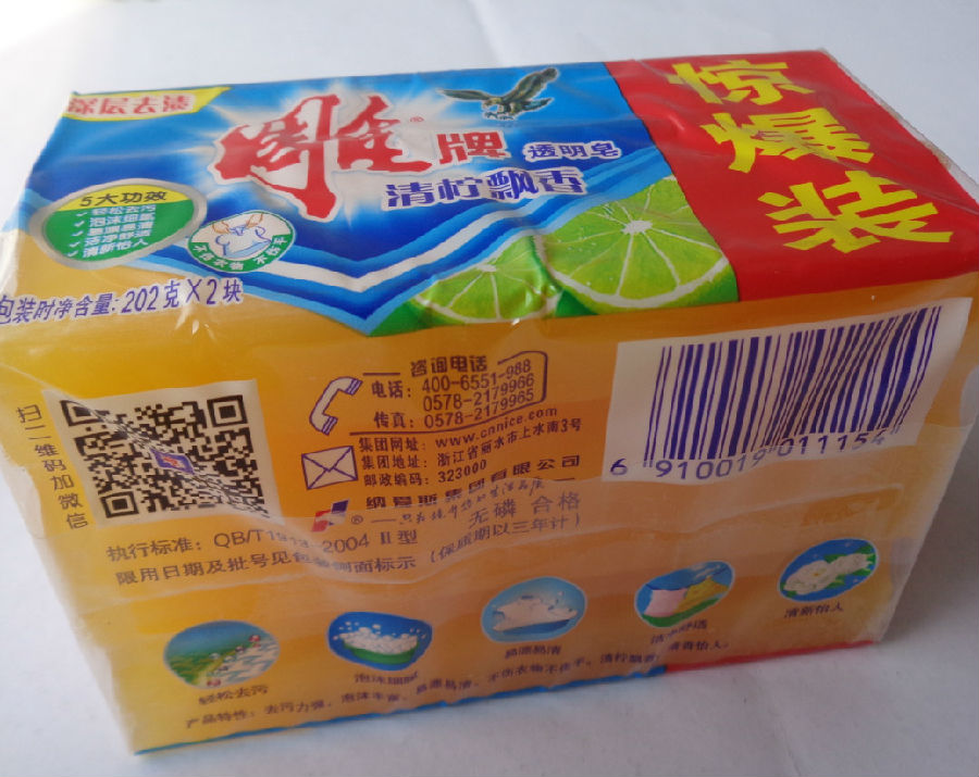 雕牌透明皂清柠飘香202克x2块惊爆装深层去渍