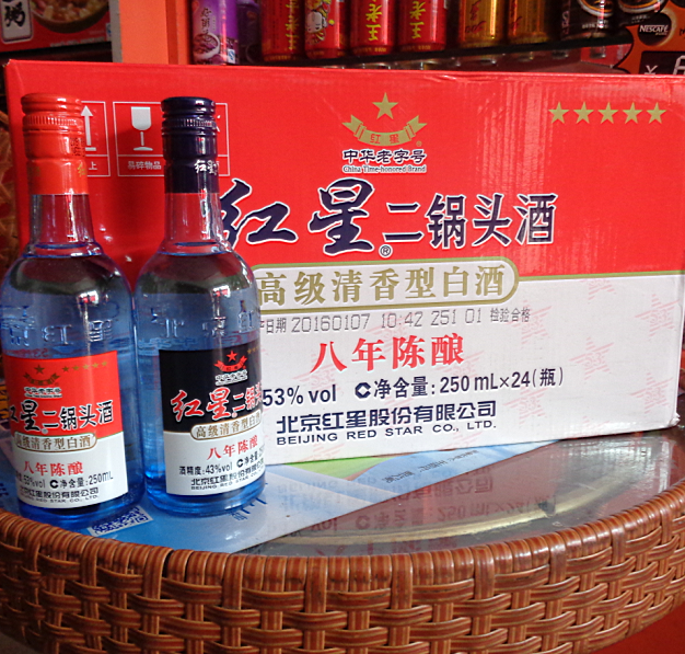 中华老字号红星二锅头酒高级清香型白酒八年陈酿53度250ml*24瓶