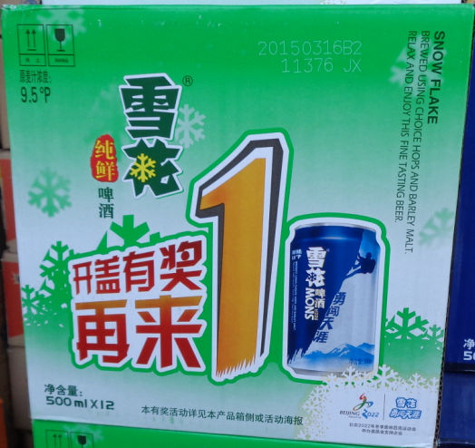 雪花啤酒 纯鲜啤酒500ml*12瓶纸箱包装 原麦汁深度9.5度