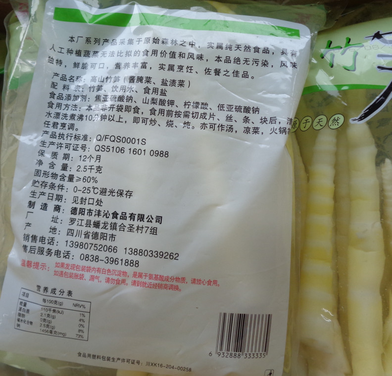 清水笋2.5kg*6袋 整件批发